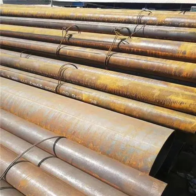 合肥gb3087无缝钢管要用钢锭或实芯管料经破孔制成毛管,随后经热扎、冷轧或冷拨制成。合肥gb3087无缝钢管在中国钢管业中具备重要的位置。据不完全统计,我国目前无缝管生产公司约240多家,无缝管机组约250多套,年产能力约450多万吨。从规格看,合肥gb3087无缝钢管的原料是圆管坯,圆管胚要经过切割机的切割制作成长短约为1米胚料,并经输送带送至溶炉内加温。钢坯被送进溶炉内加温,温度约为1200℃。燃料为氢气或乙炔。炉内温控是关键性的难题.圆管坯出炉后要经过压力穿孔机开展穿空。一般较常见的穿孔机是锥形辊穿孔机,这类穿孔机生产效率高,产品品质好,破孔扩径量多,可穿多种钢种。破孔后,圆管坯就先后被三辊斜轧、连轧或挤压。挤压后应脱管定径。定径机根据锥形钻头高速运转入钢胚打孔,产生钢管。钢管内径由定径机钻头的直径长短来决定。钢管经定径后,进入冷却塔中,根据喷水冷却,钢管经冷后,就要被校直。钢管经校直后由输送带送往金属探伤机(或压力试验)进行内部探伤。若钢管内部有裂痕,气泡等问题,将被检测出。钢管质检后还要通过严格手工选择。钢管质检后,用漆料喷上编号、规格、生产日期等。并由吊车吊入仓库里。